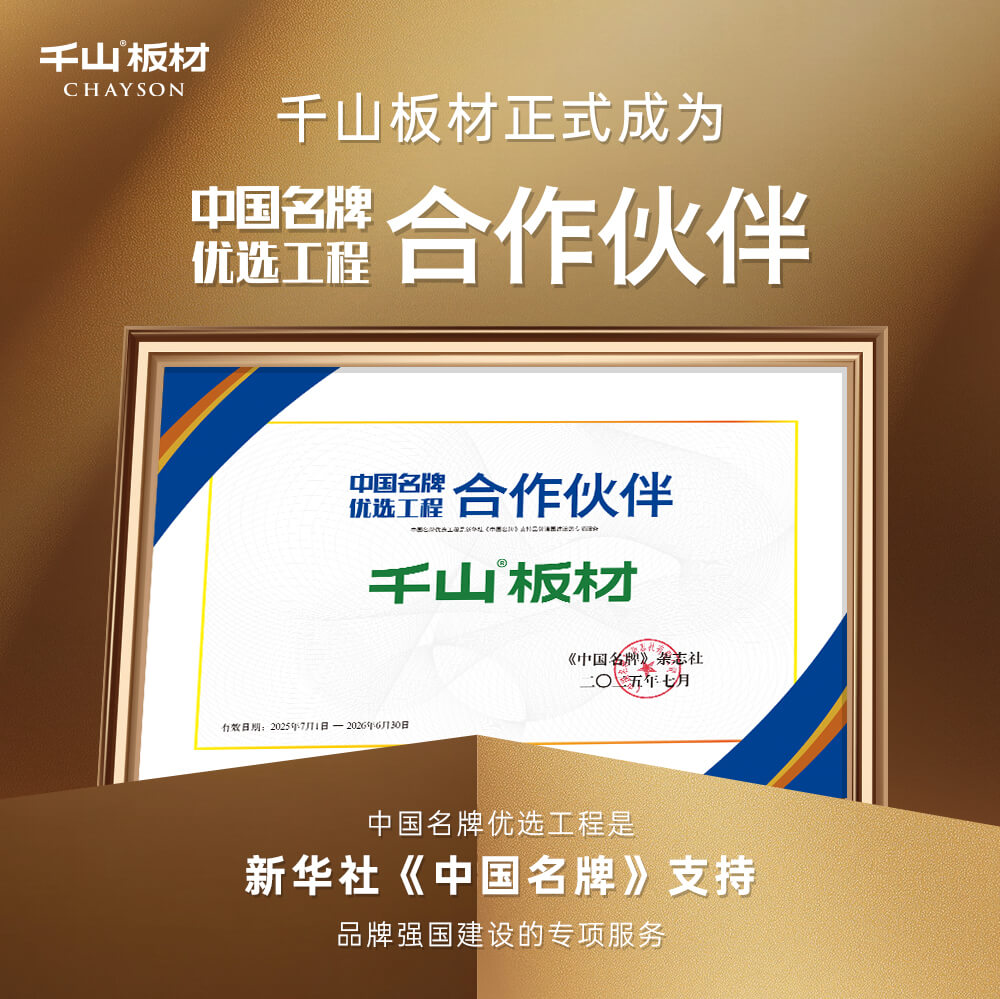 山東千山木業集團有限公司始創于1998年,是集板材研發生產、銷售、印刷、浸膠、全屋定制等為一體的綜合性品牌運營企業。公司總部位于中國“板材之都"山東臨沂,擁有多個產業基地,堅持"質量第一,客戶至上"的原則,致力于為客戶提供高質量的板材產品。千山產品均通過ISO9001質量管理體系認證, 歐盟CE認證,中國環境標志認證等。千山板材先后榮獲山東名牌、省林業重點"龍頭企業”、市級重點龍頭企業、板材十大品牌等榮譽。千山集團未來發展將立足山東,布局全國,努力推動板材產業的高端化、品牌化發展,實現企業的可持續發展。