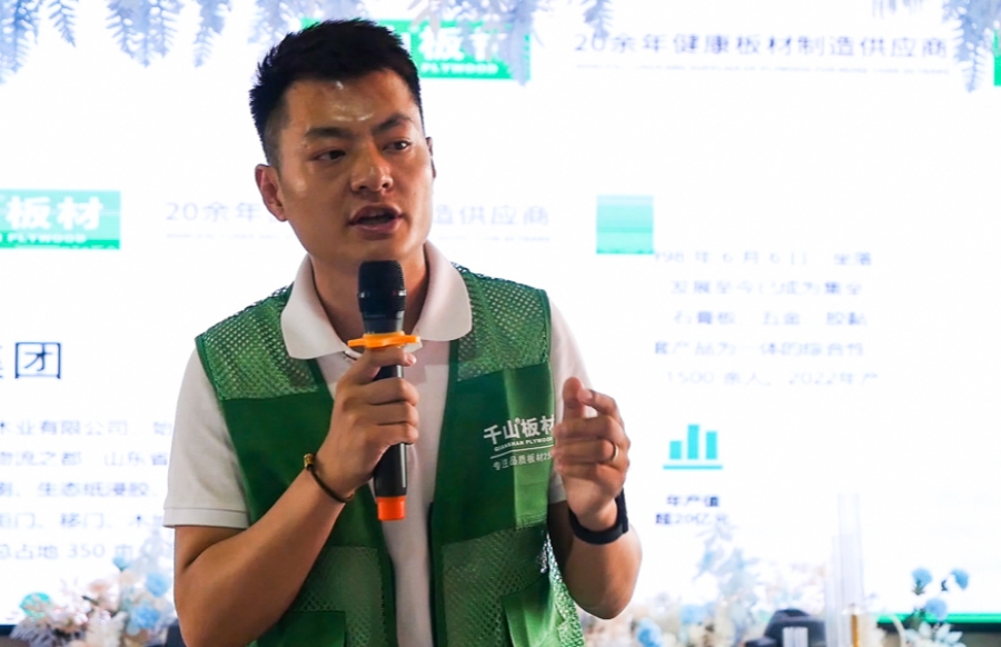 千山板材北方大區負責人史生平致辭,史總分享了千山板材對家具板質量和技術的把控,希望帶給消費者朋友們一個健康、環保、舒適的家庭環境。
