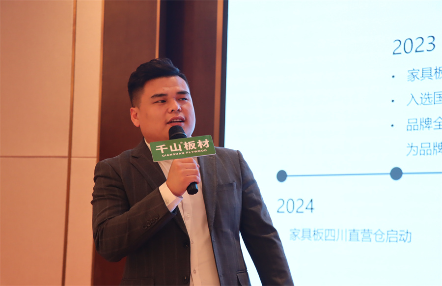 山東直營(yíng)倉(cāng)區(qū)域經(jīng)理曹全震,帶大家回顧了千山的發(fā)展歷程。曹總分享到,千山家具板精準(zhǔn)把控市場(chǎng)需求,通過(guò)品類(lèi)優(yōu)勢(shì),持續(xù)圈粉消費(fèi)者,接下來(lái)也將堅(jiān)持創(chuàng)新、不斷升級(jí)產(chǎn)品。