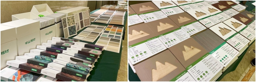 千山板材華南區大區經理倪磊為大家詳細介紹了千山的產品體系2024年6大系列花色以及千山板材在環保、工藝等方面的產品優勢,讓嘉賓們對千山有了更深入的了解。