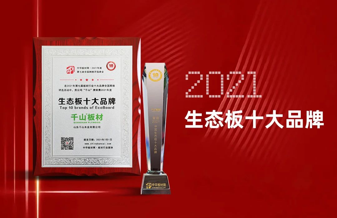繼2021年榮獲中華板材網“中國板材十大品牌”、“生態板十大品牌”雙項殊榮后,千山板材載譽攀登,多年來相繼斬獲“板材十大品牌”、“板材影響力品牌”、“家具板十大品牌”、“2023年度最受設計師喜愛建材品牌”等多項行業榮譽,傳遞優秀企業的榜樣力量,積極助推行業發展!