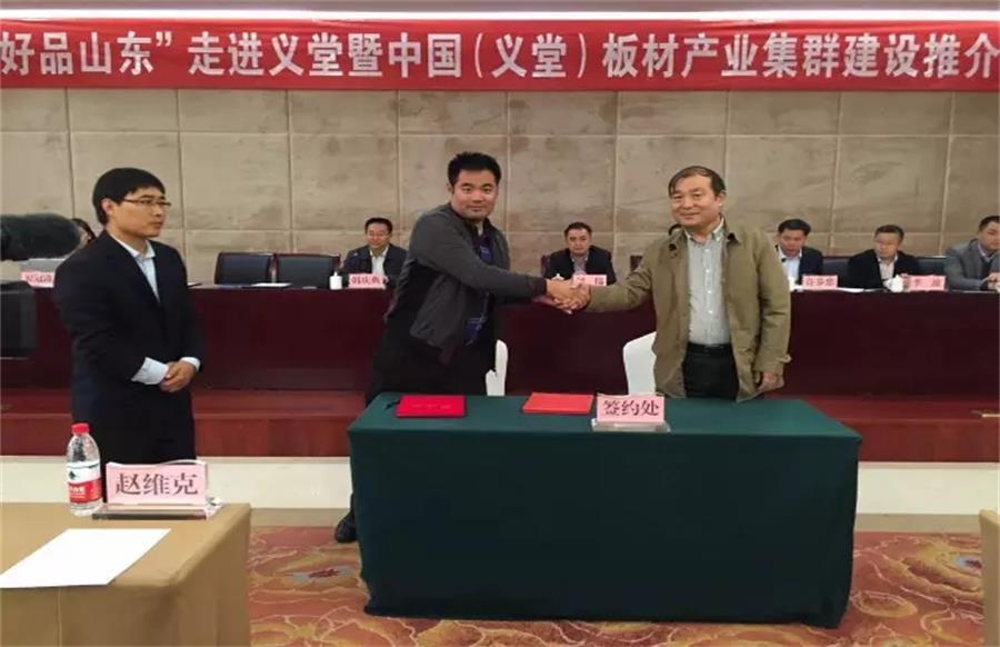 2016年10月28日,“好品山東”走進義堂暨中國(義堂)板材產業集群建設會議在臨沂市成功召開。千山作為板材企業代表與“好品山東”現場簽訂戰略合作協議,進一步提升品牌競爭力和影響力。