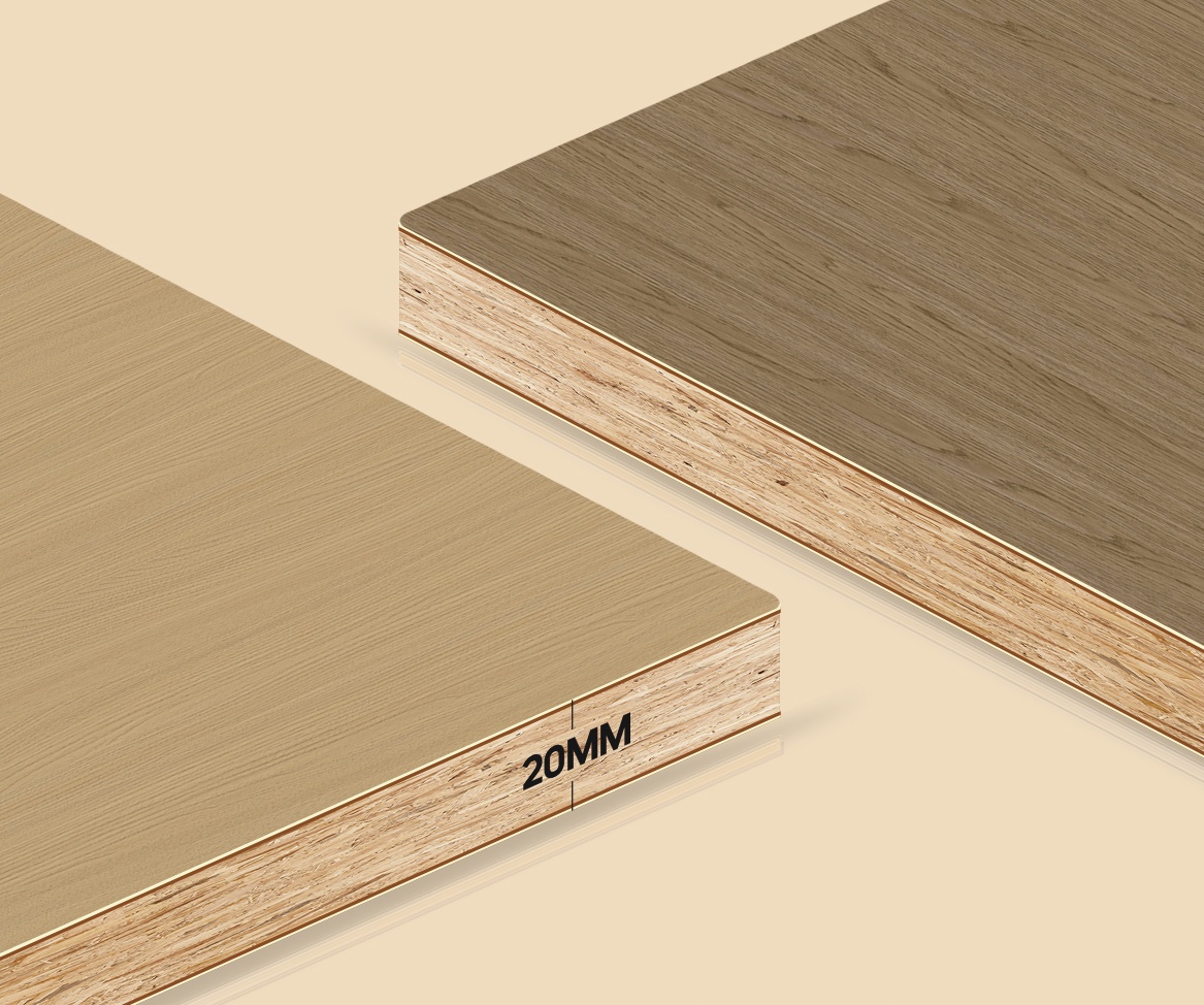 采用成熟大徑桉木,只保留純凈原木芯材,具有密度大、硬度高的穩(wěn)定物理特,20MM厚度加持門板的高承重、抗變形力。