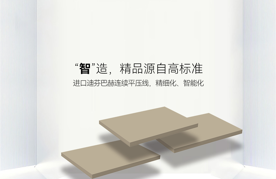 工序精細嚴苛,采用進口德國迪芬巴赫連續平壓線制造,標準化、智能化生產,基材一次成型,大幅提升產品精度和生產效率。